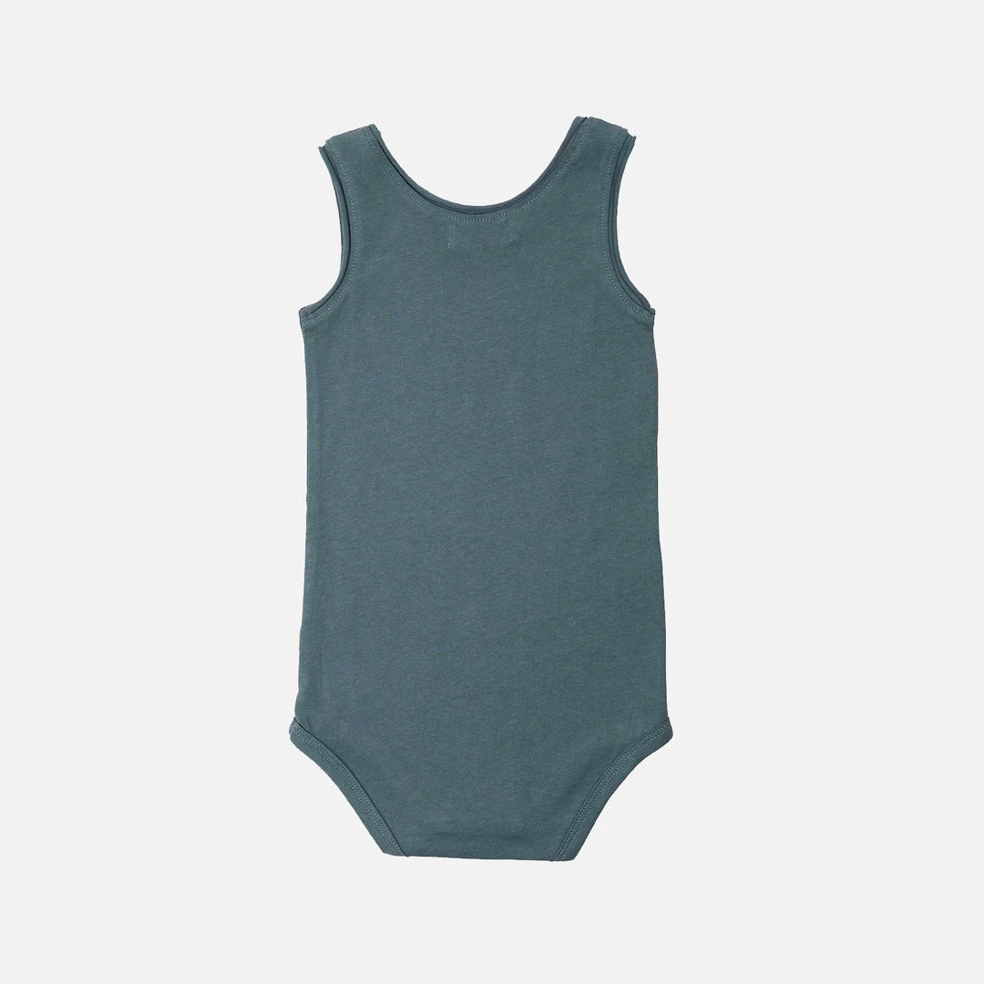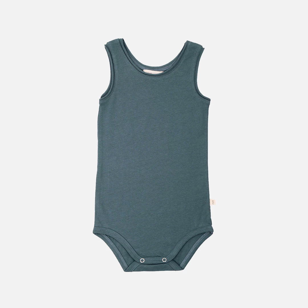 Soft sleeveless body. The sleeve and neck-opening have rolling raw edges. Designed with two YKK popper fasteners, nickel free.