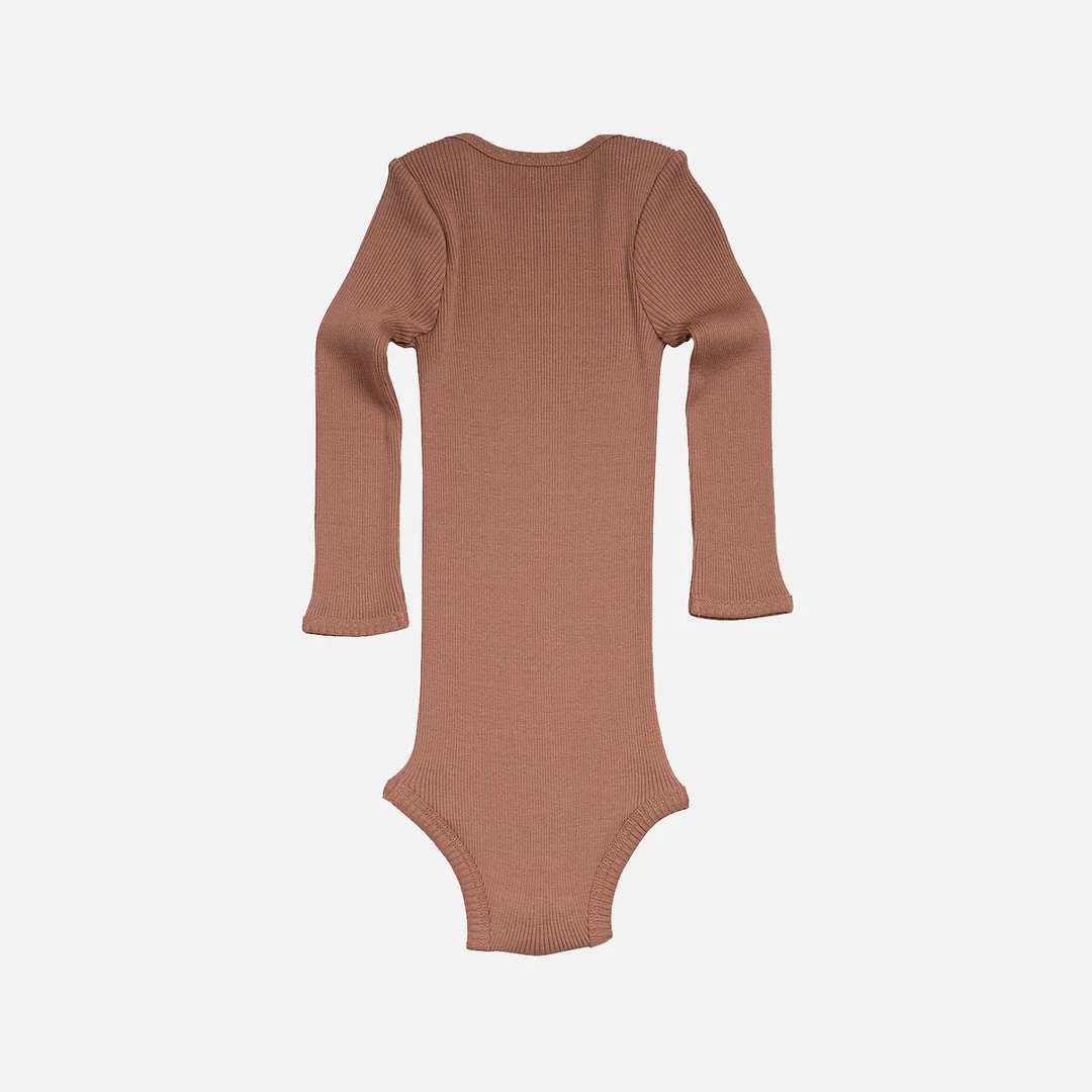 Soft seamless long sleeve body with envelope neck opening. Features YKK nickel-free snap buttons for easy dressing. Made in a soft silk-cotton blend making it great for sensitive skin.
