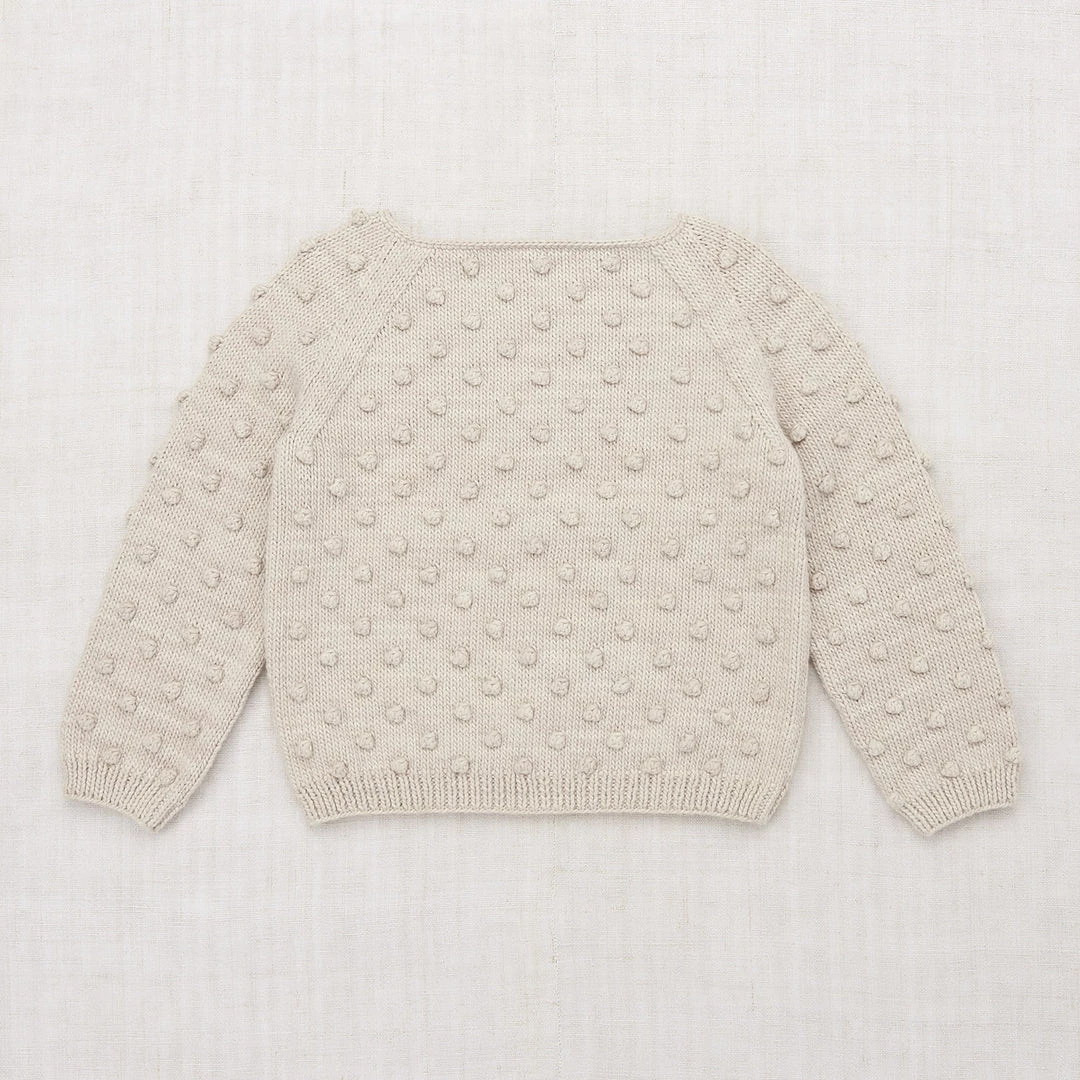The signature popcorn stitch sweater is really versatile and be used throughout the year. It features raglan sleeves and horn button closure at the back neck. This is truly a collectable piece that be worn with anything at any time all year round. We love these popcorn sweater.