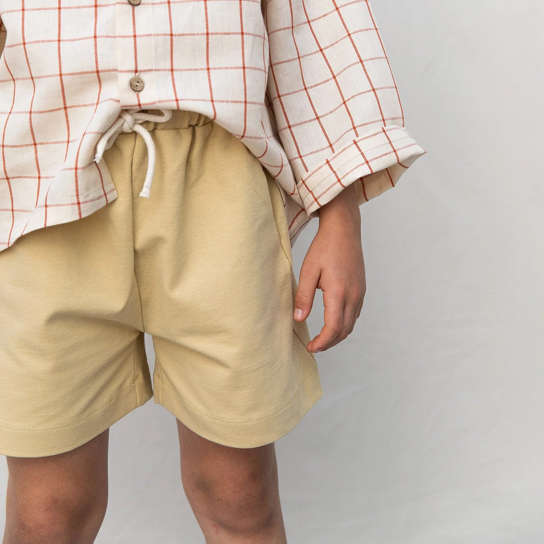 Shorts with a loose and relaxed fit. Featuring pockets, elastic waistband and drawstring for an adjusted fit. Made out of slightly elastic cotton material.