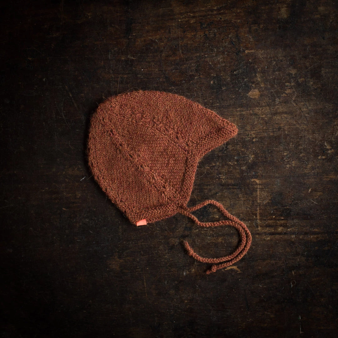 A beautiful and soft hand-knit bonnet with twists along the decrease. These types of bonnets are a classic in Denmark a classic that every danish baby wears. It’s the perfect shape to keep little heads and ears warm and It sits snugly with its characteristic tip on the forehead which protects the fontanelle.