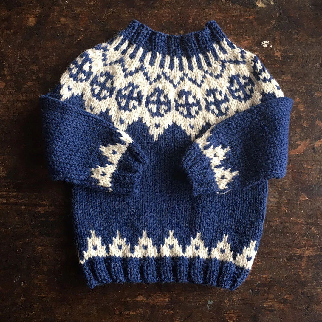 This classic Faroese sweater has become a much loved bestseller. Hand knit in a beautifully soft and chunky yarn We know that is a precondition in order for the children who wear our sweaters to be happy while wearing them. This sweater is the perfect layer during the colder months and is great on its own instead of a jacket in the Spring and Autumn.
