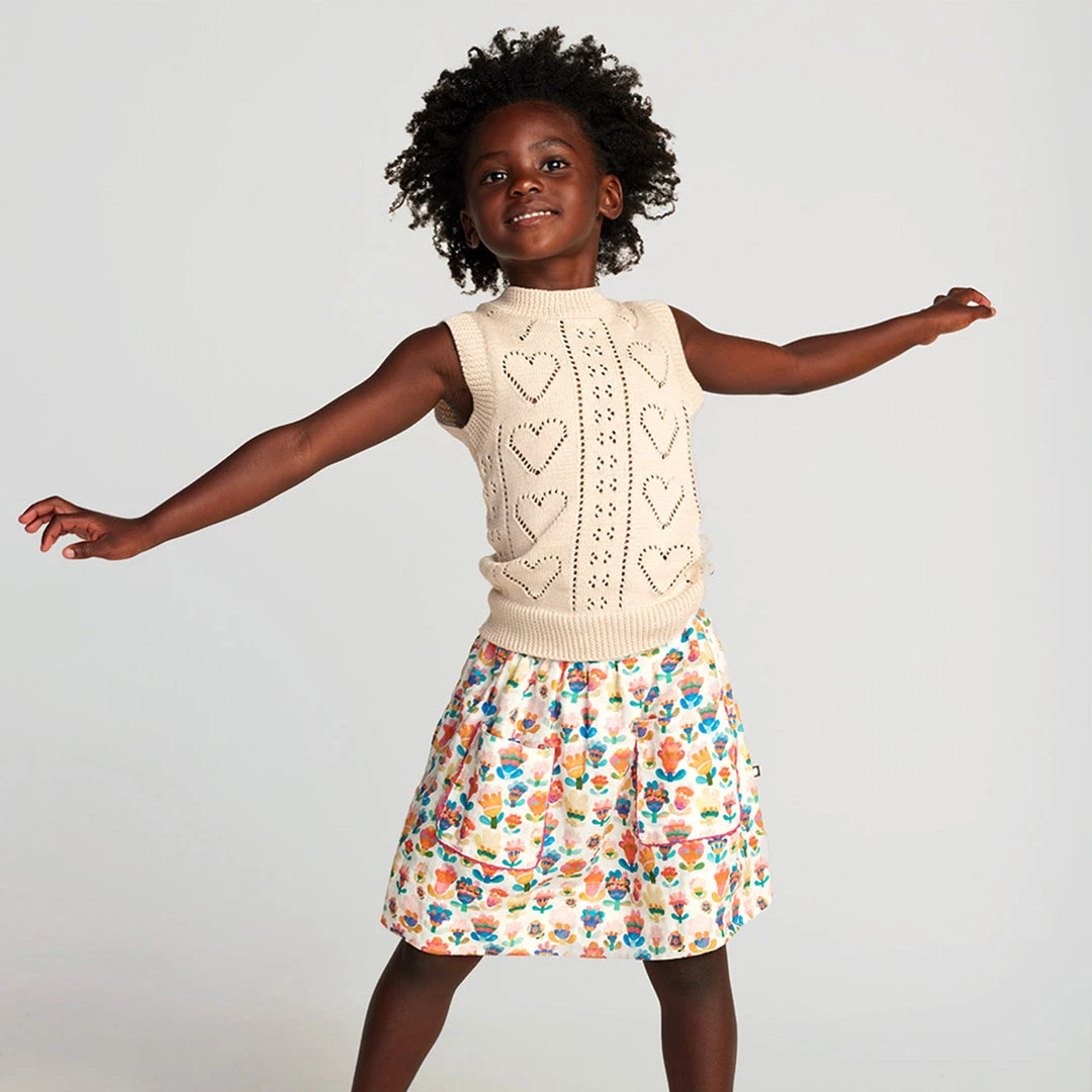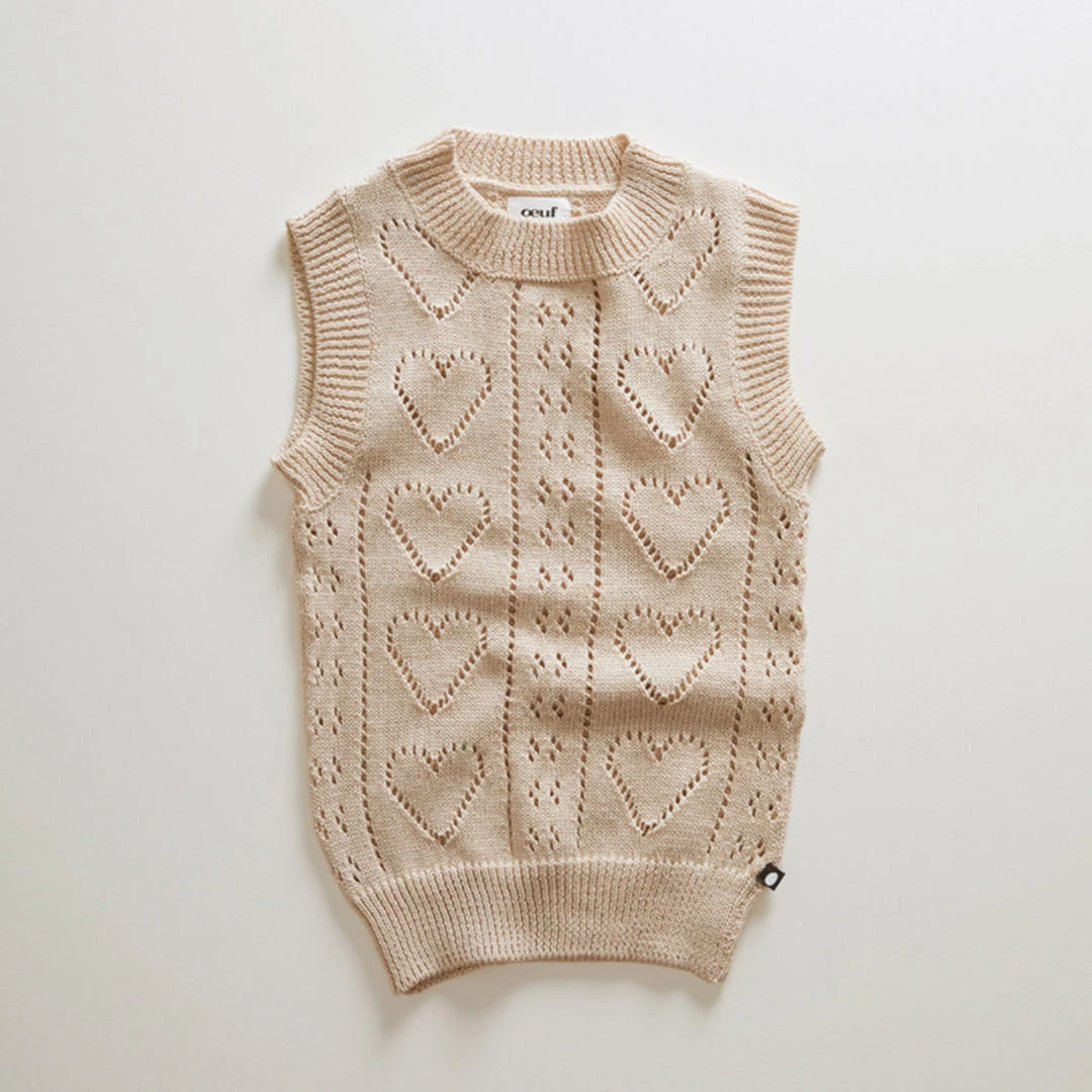 This lightweight vest made with a sweet heart pointelle knit is a perfect summer layer and can also be worn on its own in the warmer months. Features a ribbed neckline and hems.
