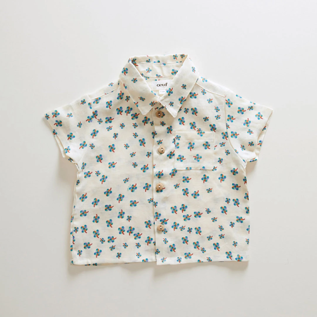 The much loved Oeuf Linen shirts are back with us again. This short sleeved shirt features a classic collar and buttons down the front. The Linen materials makes this shirt perfect weight for summer.
