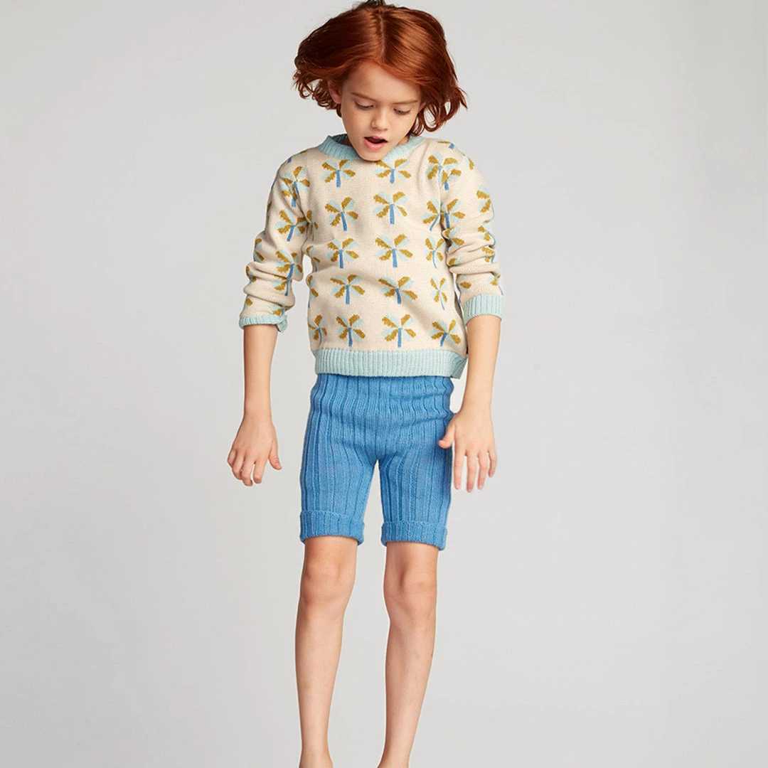 This knitted sweater features a clover pattern with contrasting neckline, cuffs and hems. Super soft, perfect for summer and in between seasons.