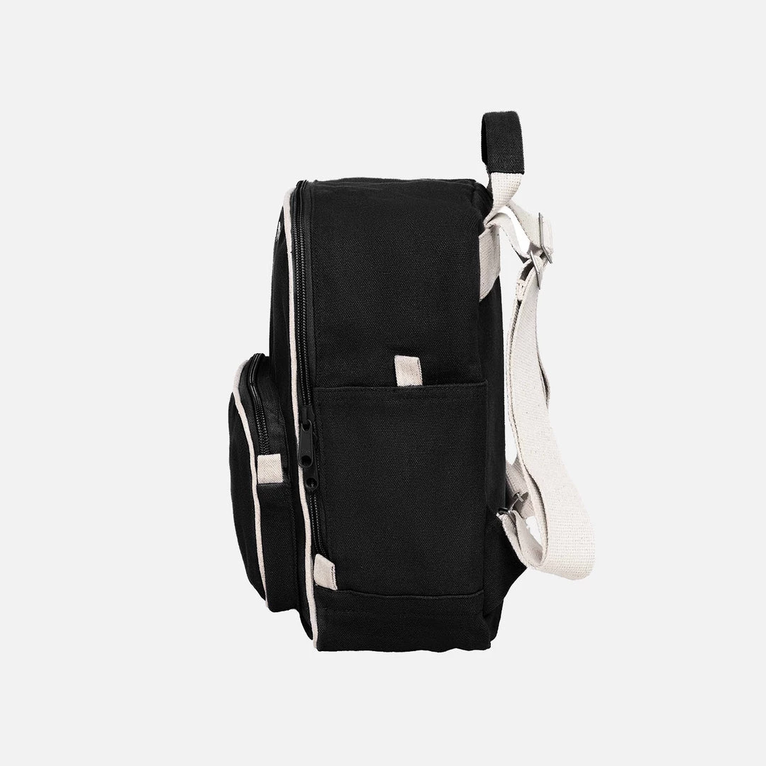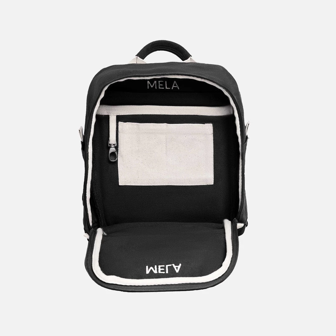 The backpack MELA II is certified by both the Fairtrade Standard and the Global Organic Textile Standard (GOTS). It is exclusively made from sustainable materials such as organic cotton canvas and free from any parts of animal origin, hence vegan. Also, the buckles are free from chrome and nickel. The dyed organic cotton canvas is naturally water resistant. Due to different impacts your MELA II will get an individual note over time.