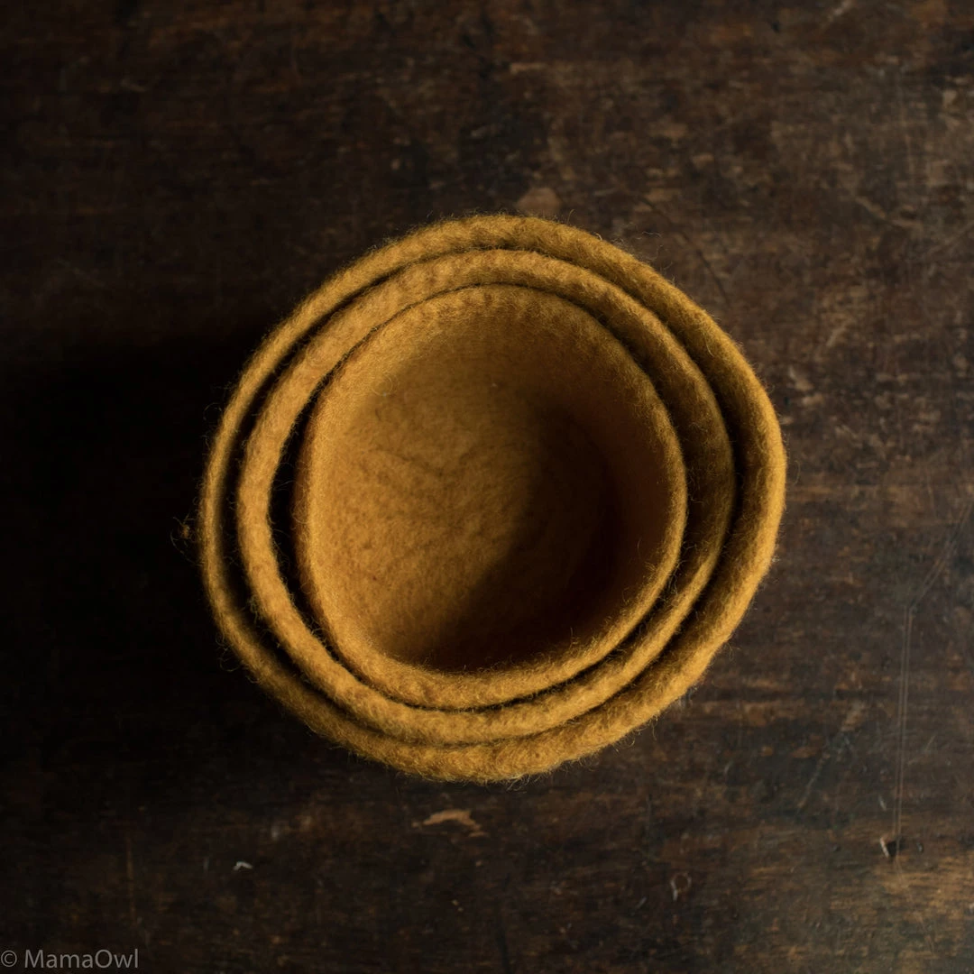 Hand crafted Felted wool stacking bowl set. Perfect for counting and sorting games as well as balance and fine motor skills.