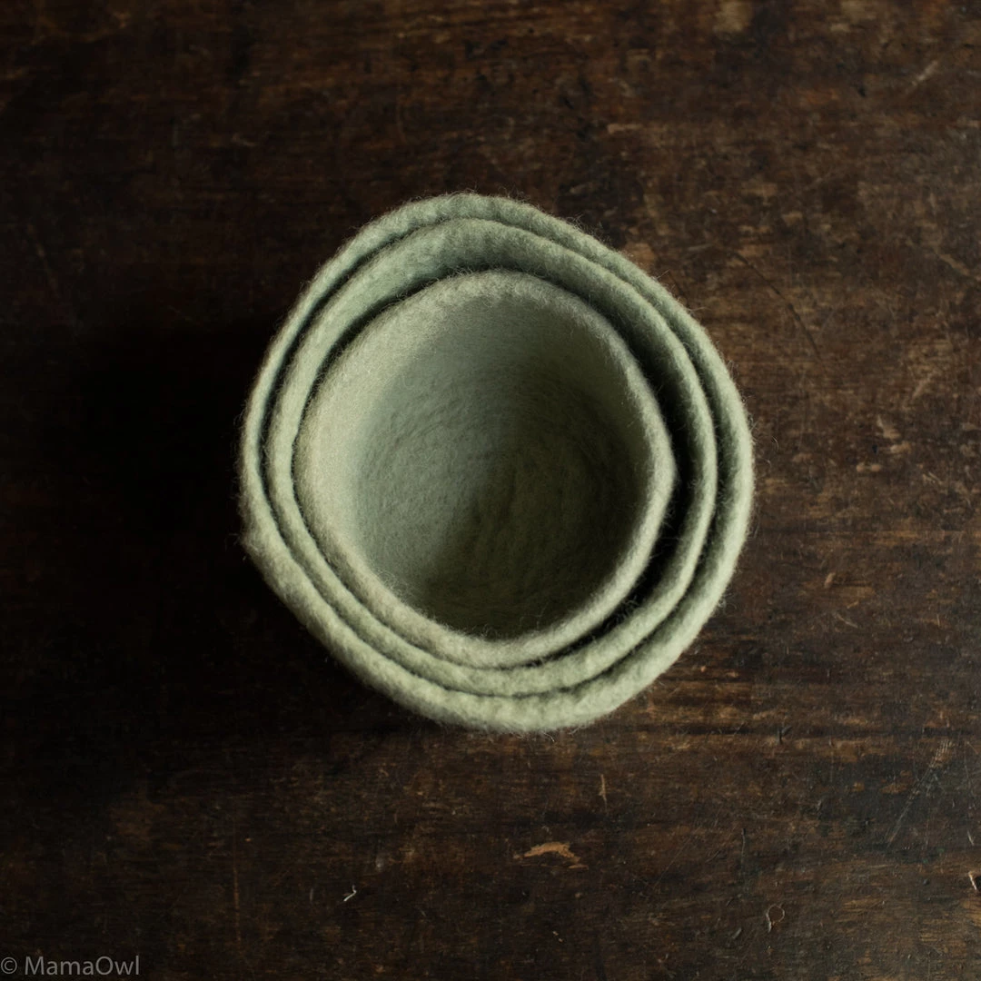 Hand crafted Felted wool stacking bowl set. Perfect for counting and sorting games as well as balance and fine motor skills.
