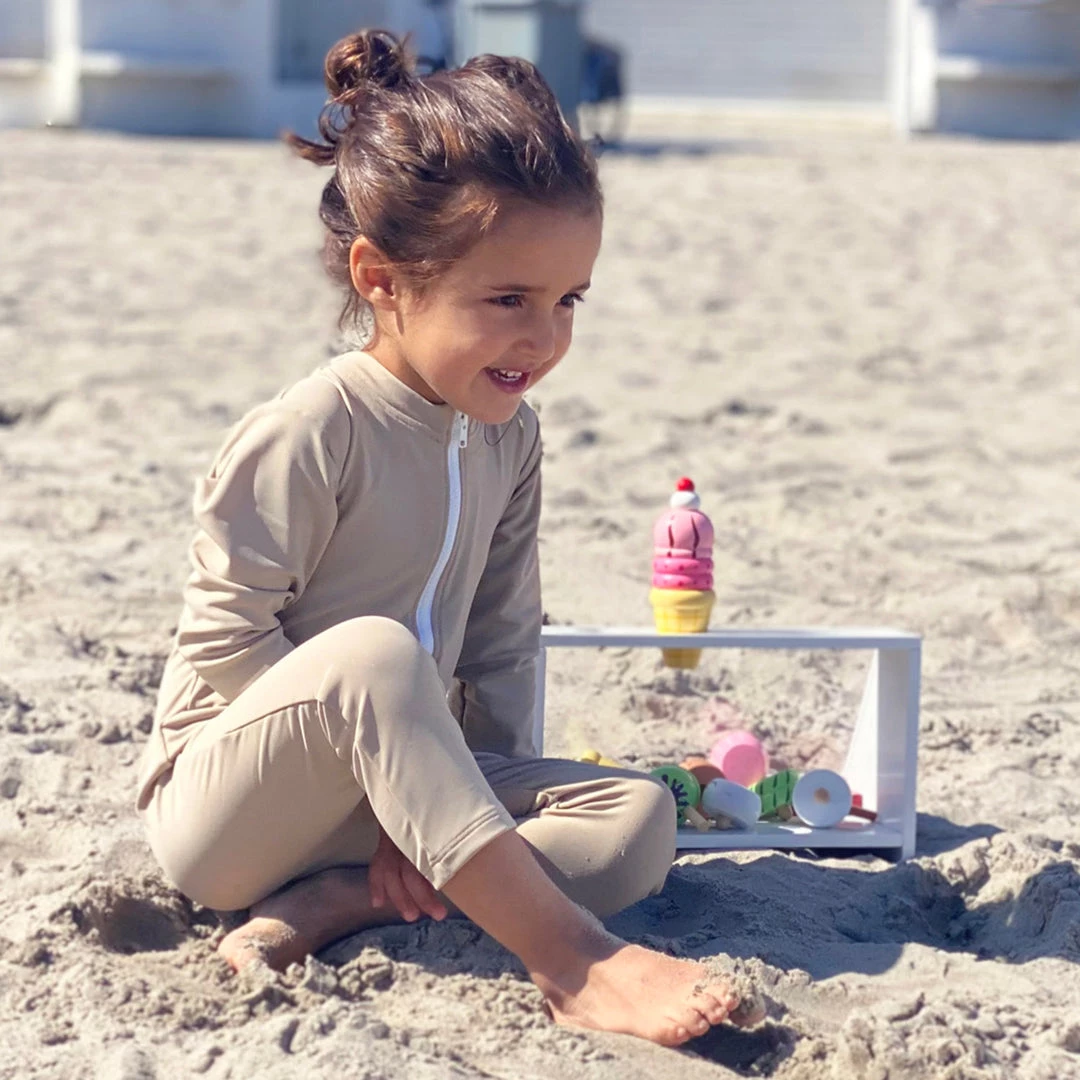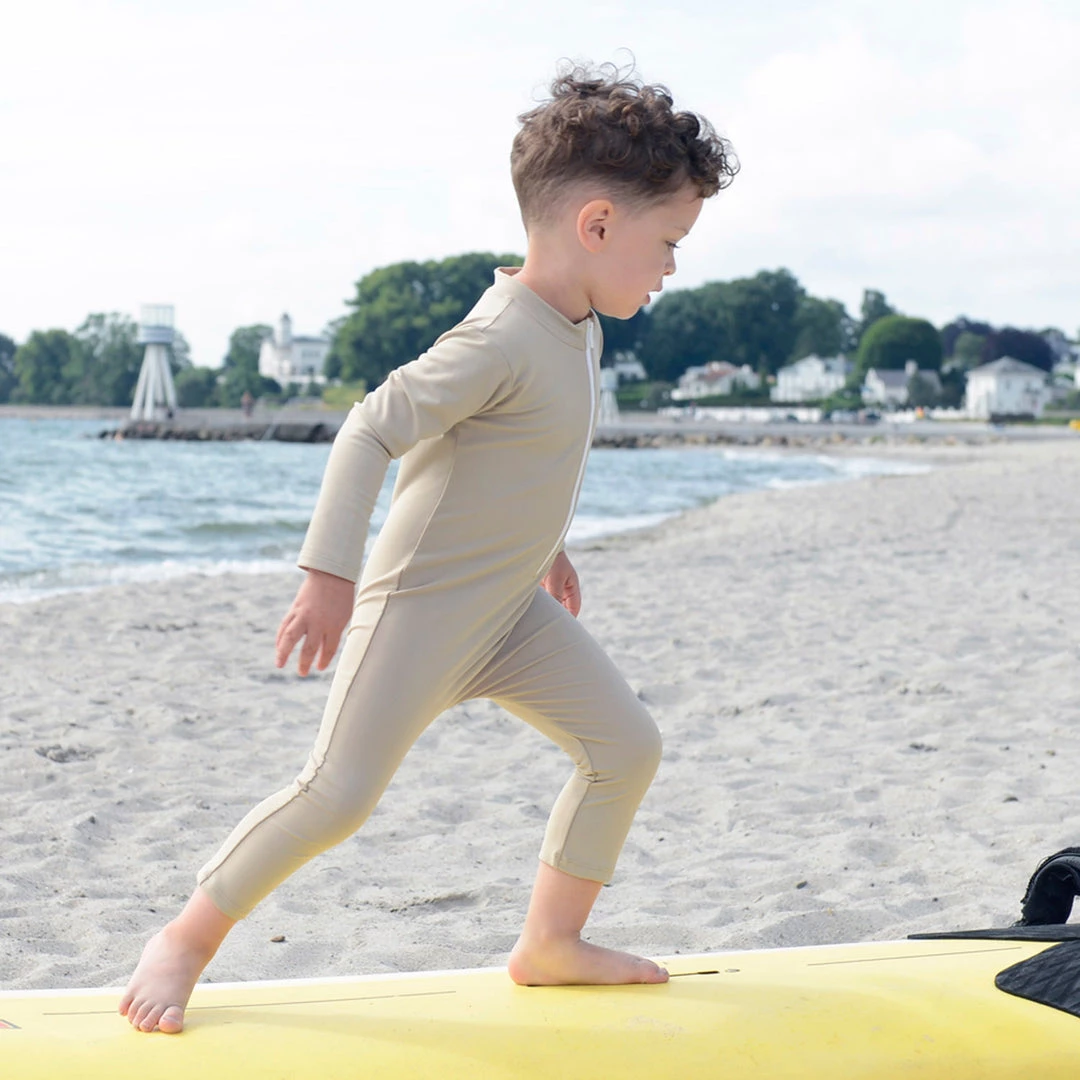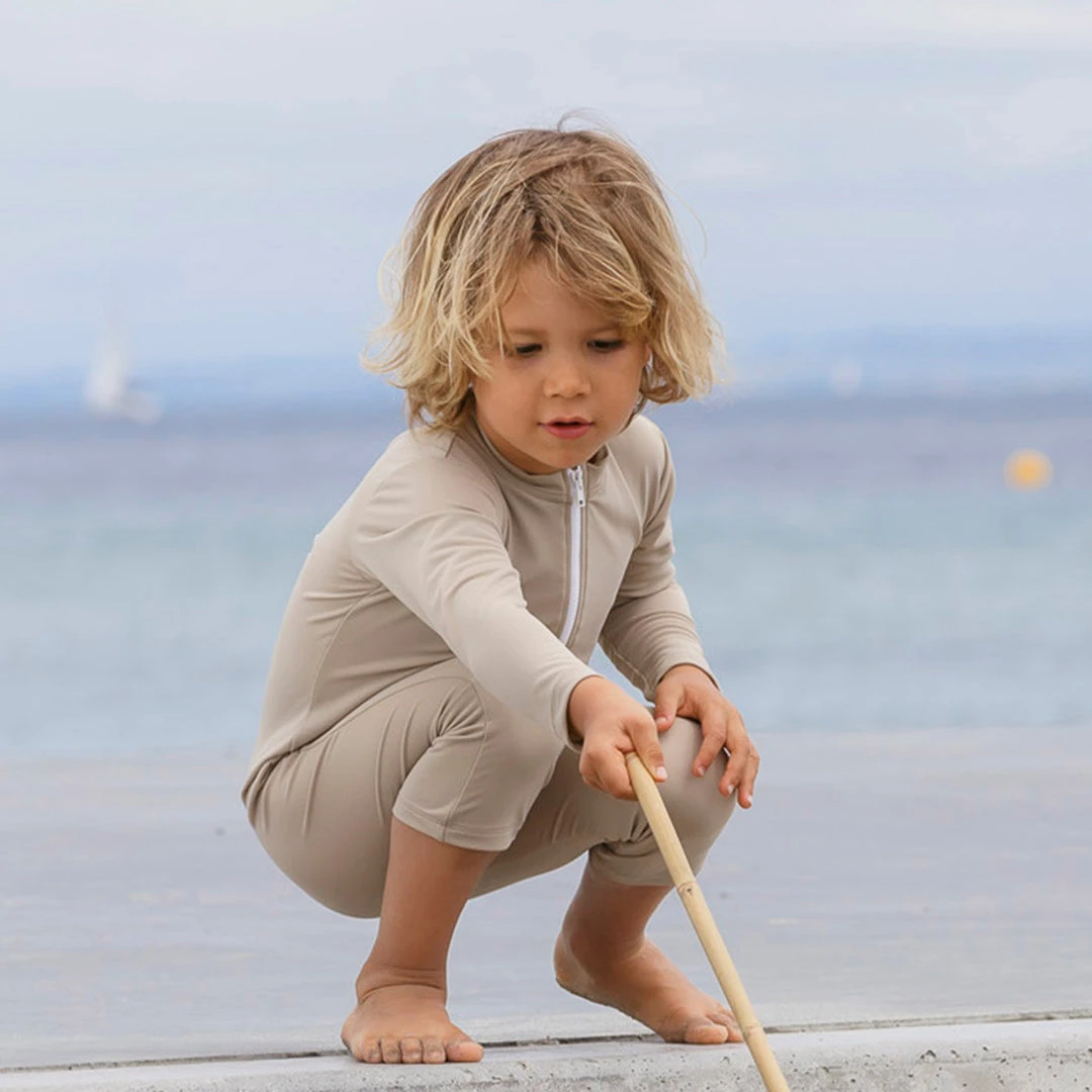 A great UV full body suit for a day playing on the beach. Designed with long sleeves and legs for ultimate protection from the sun’s rays. This sunsuit is without an appliqué on the back, it is solid colour all over. Combine this suit with a hat for maximum sun protection. Easy open front with a YKK zip and zip protection flap.