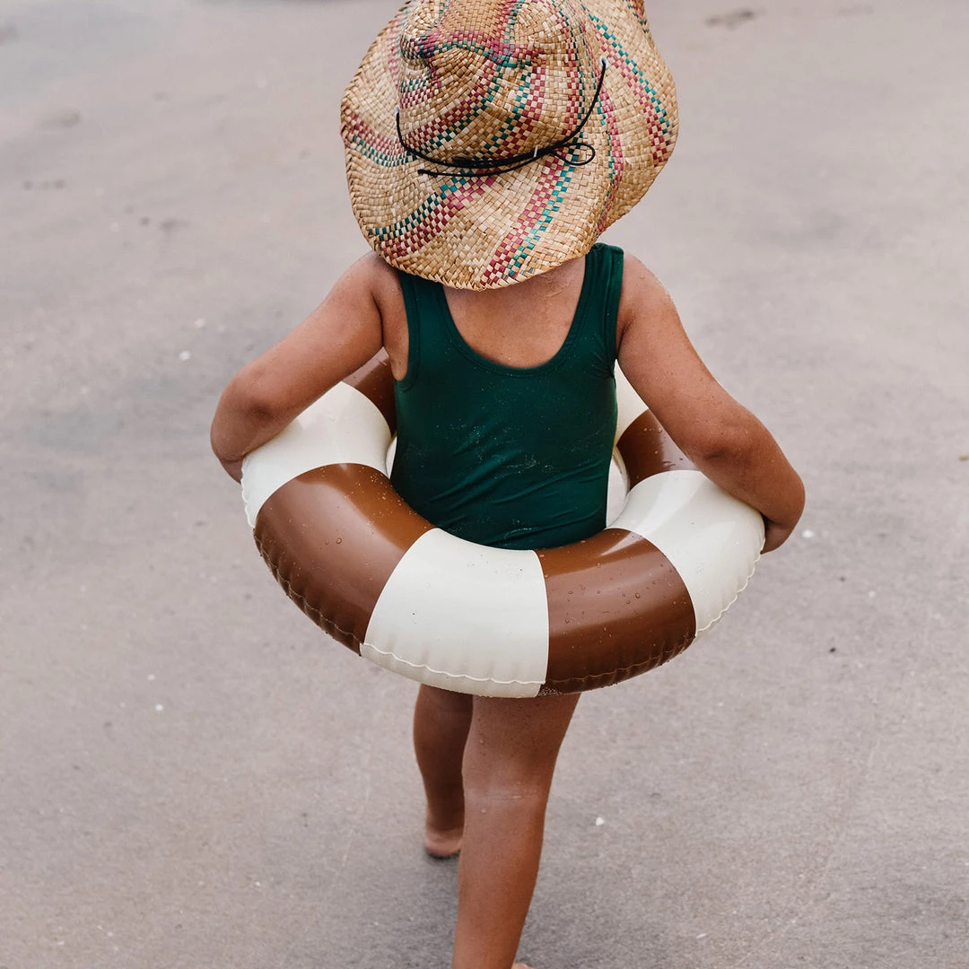 The Petites Pommes’ swim rings are a reborn childhood classic. The characteristic striped floats come in different sizes from toddler to adult, and in a range of beautiful colours to complete any summer look.