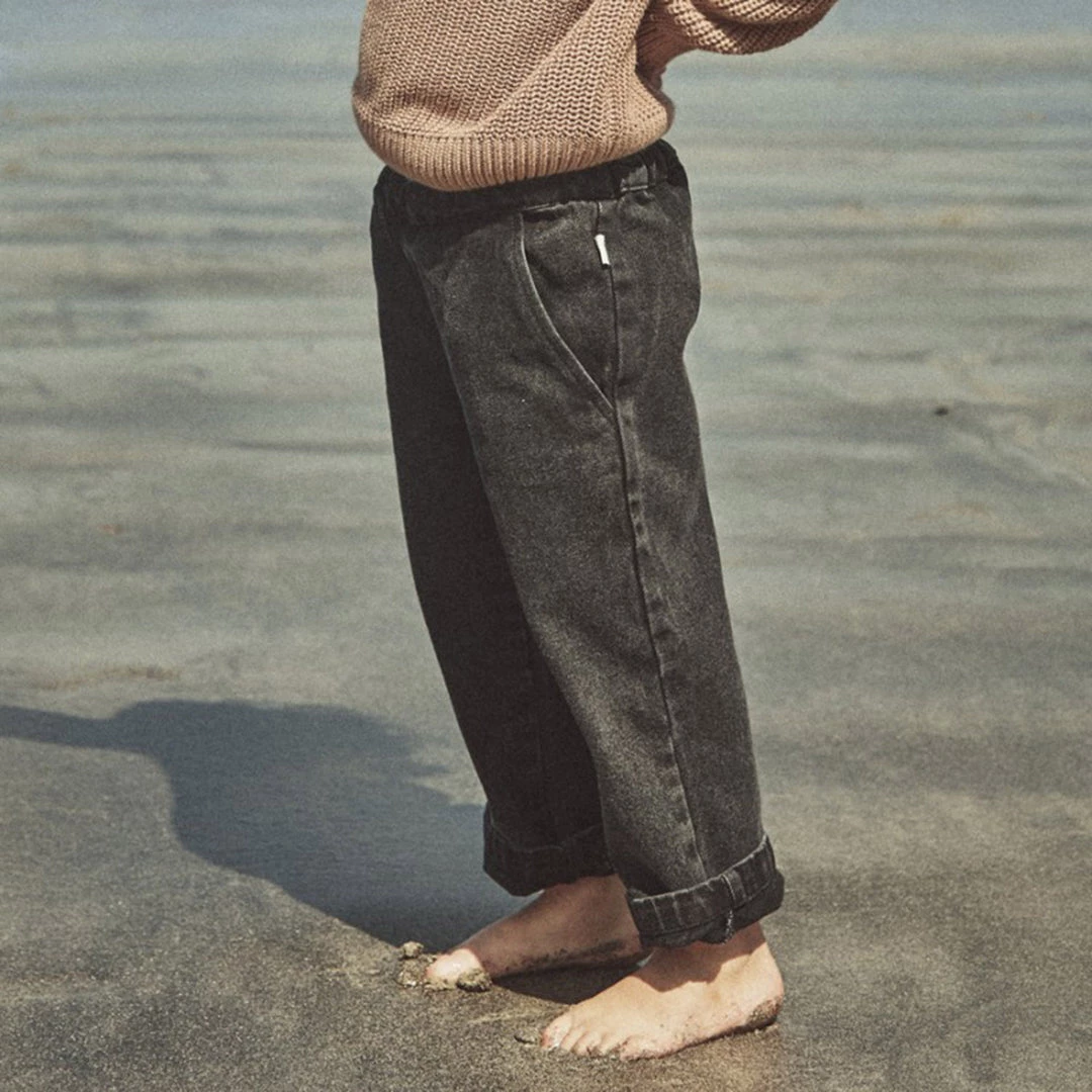 Denim trousers with drawstring on the inside of the waistband. Timeless trousers, great for all year round.