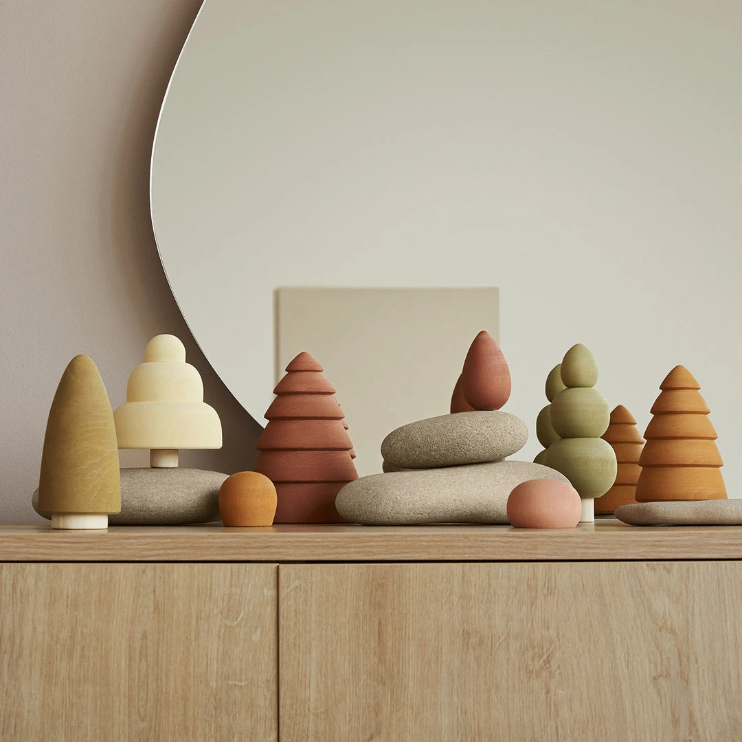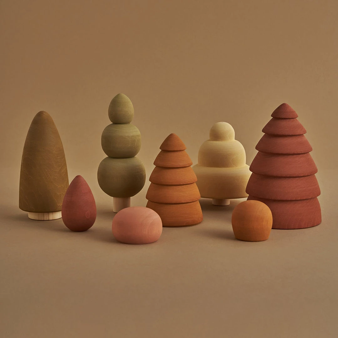 If your child is building a city from our Wooden Cubes, you can create a park in the middle of the city, or a forest in the areas around the city. If your child is building a mountain landscape with our Wooden Arches, you can create the forest around it in different seasons.