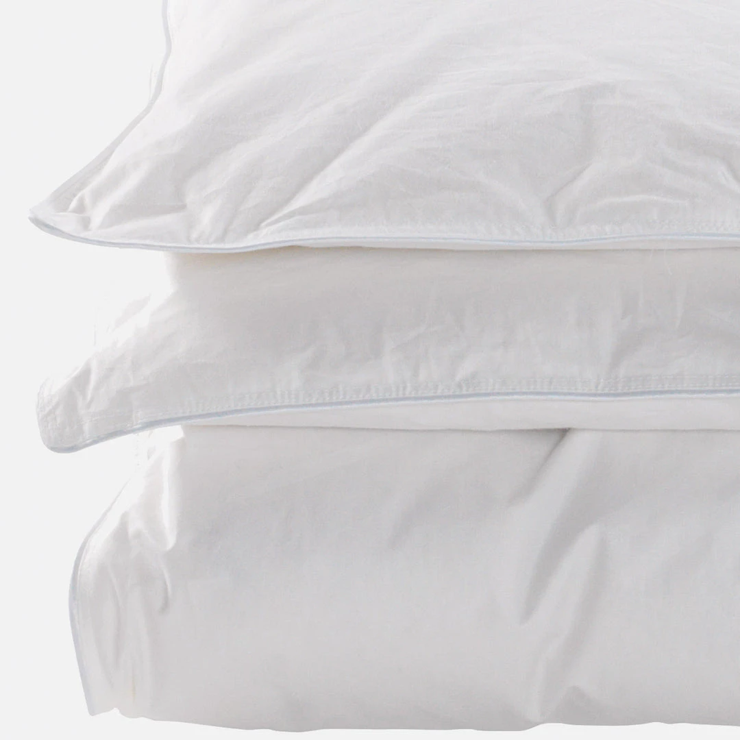 This duvet has 70%Â duck down and 30% small white feathers from European birds. Stitched inside a 100% cotton cambric casing, creating a nice soft duvet. Produced to Oeko-Tex Class 1 standards, you can be sure there are not harmful chemicals. These are also washable up to 60 degrees and the fabric is so tightly woven it acts as a barrier to house mites making it allergy friendly.Â
