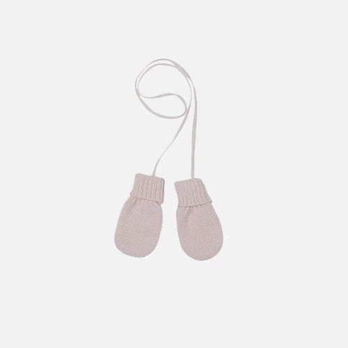Cosy and soft merino wool baby mittens. The special knit that grows with your baby. The fold back cuffs make them stay on and the cord ensures that they will not get lost.