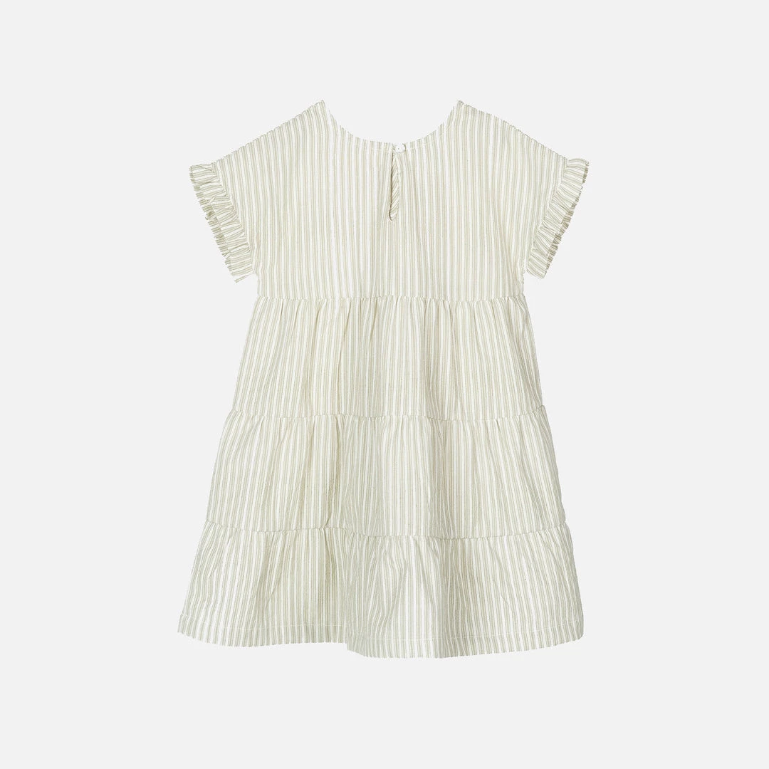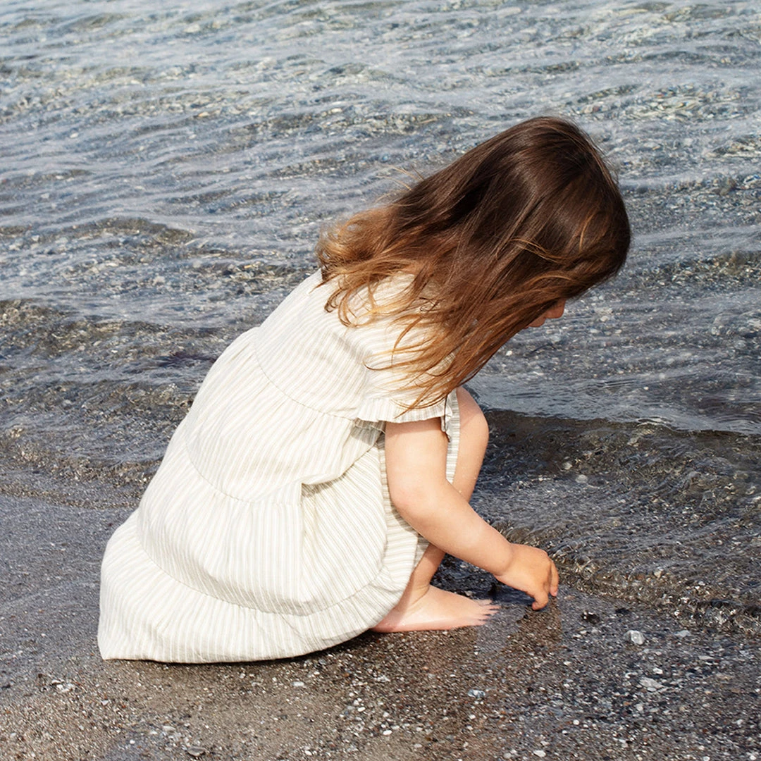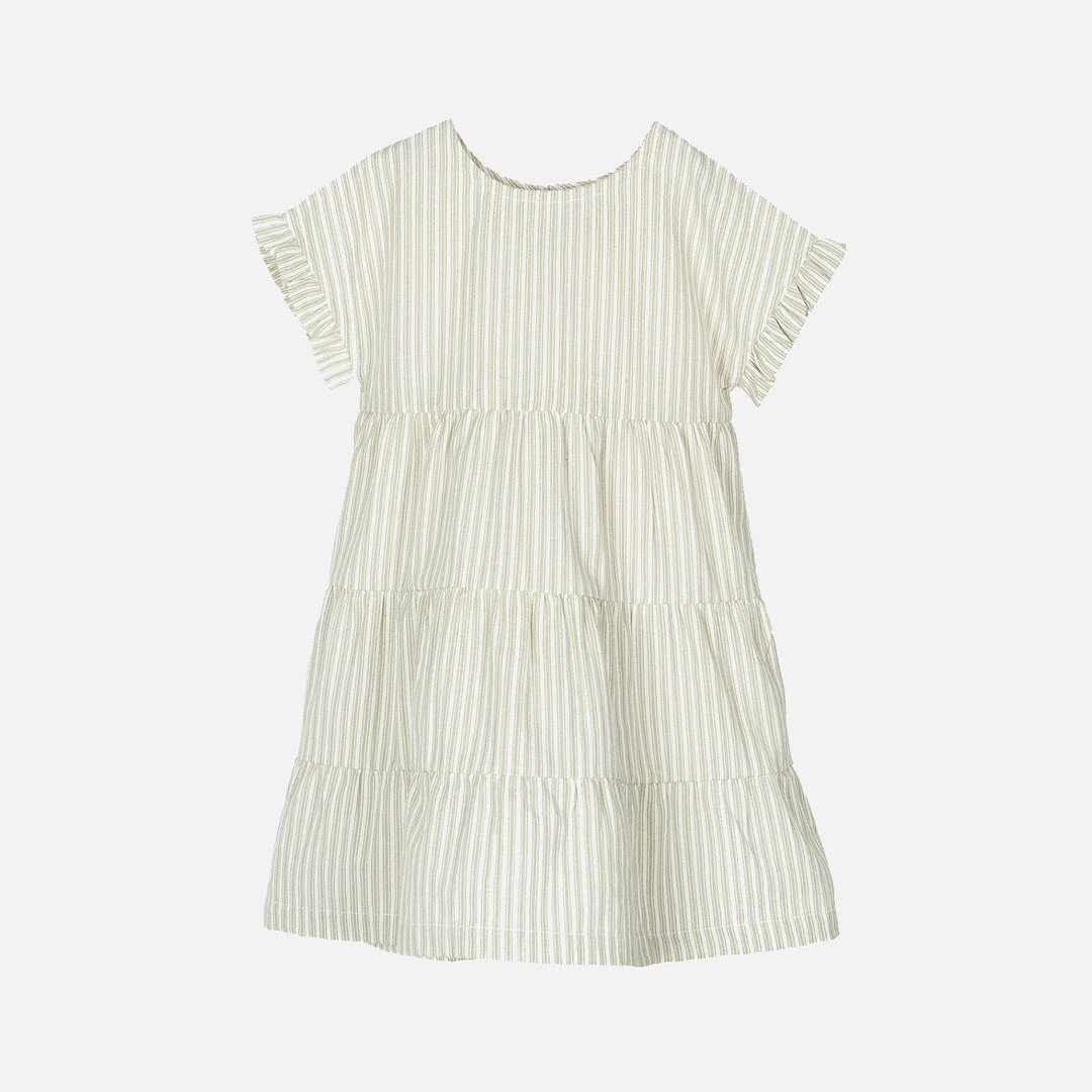 The flair dress is a sweet style for summer. Lightweight soft organic cotton. Features small frills on the short sleeves. Great on its own or layered when needed.