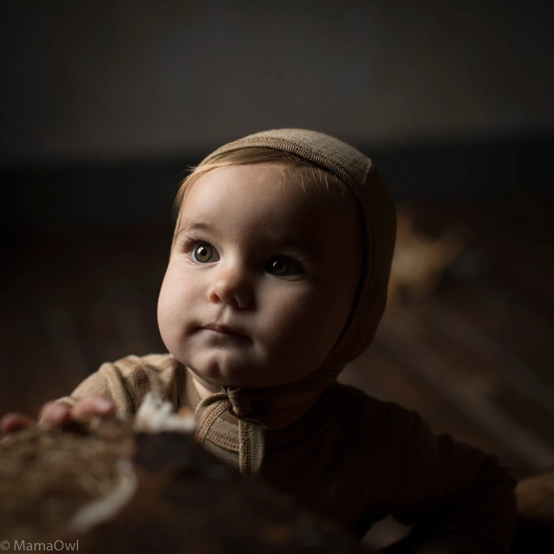 Super soft 85% Wool 15% Silk Bonnet with a subtle pointelle pattern to add texture.