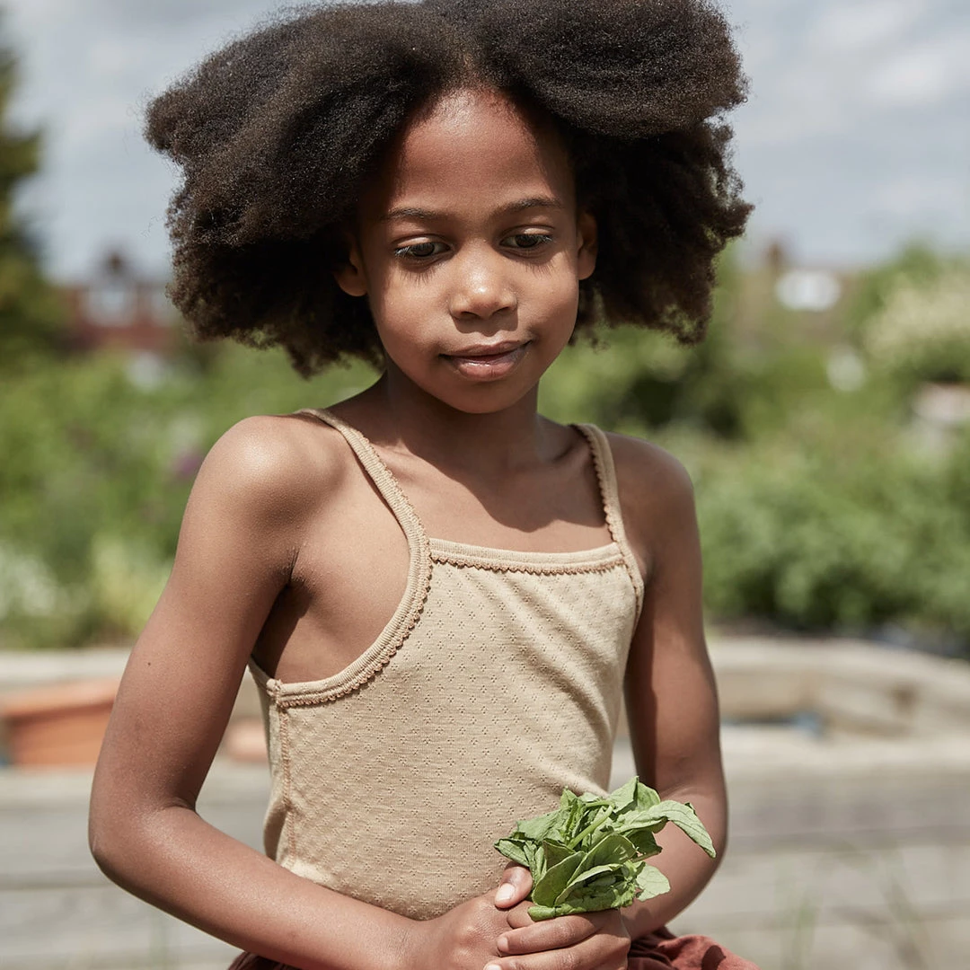 Super soft and perfect weight for all year around. Designed with a subtle pointelle pattern to add texture. Looks great with the matching leggings as base layers.