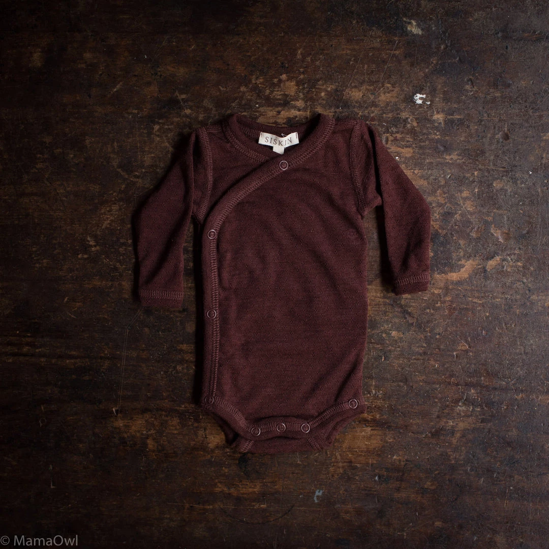The perfect baby body style as it is easy to open up and dress a newborn. Designed with a subtle pointelle pattern to add texture. Super soft and perfect weight for winter. The perfect base layer.