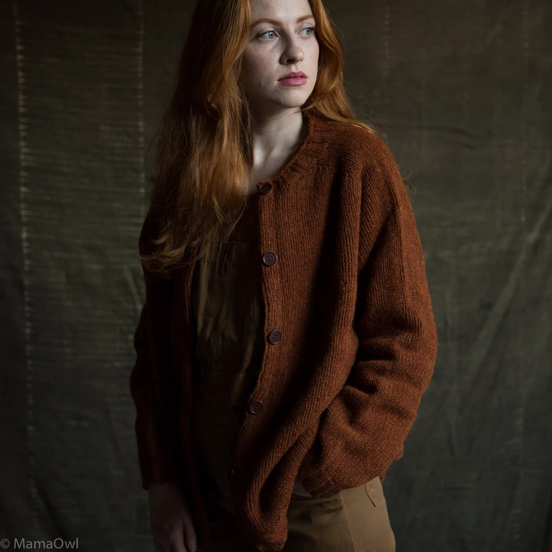 This cardigan is designed by the SISKIN team and created exclusively for MamaOwl. Our aim is to use more and more wool from the beautiful fleeces of British born and bred sheep. Courtney & Co. British made Corozo buttons are used in all our SISKIN Knitwear.Â