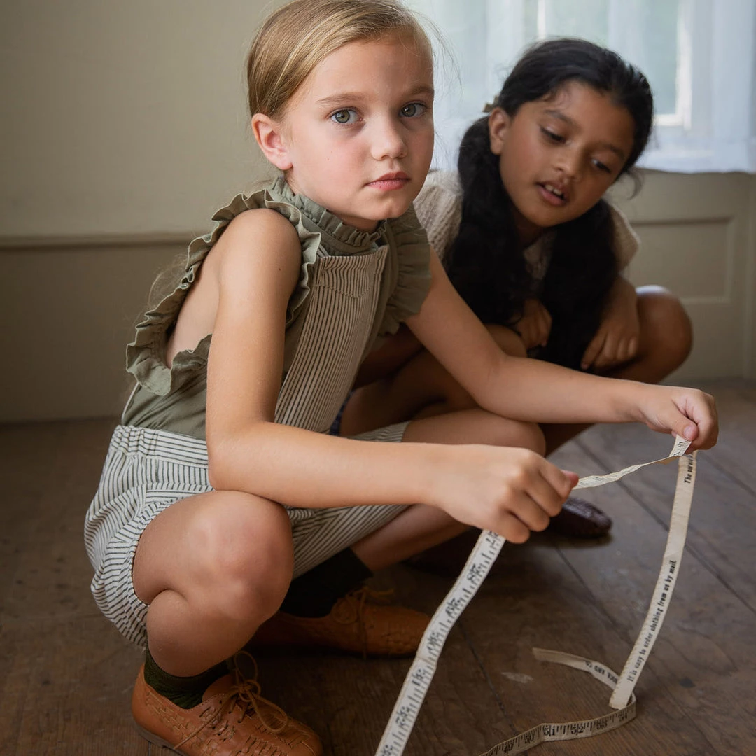 The much loved Soor Ploom overalls, updated as shorts for summer. Designed with hidden wood button fastening at the front bib with adjustable straps, oversized pockets, and elastic at the back waist, for a comfortable fit.