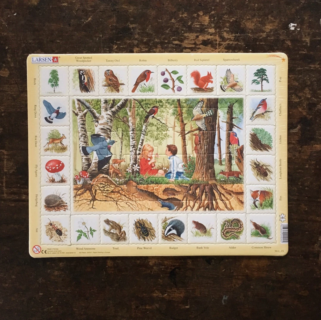 There is a central puzzle within its own frame, and here you will find all the same species in their natural habitat. We have chosen common species that children find in the nature, and therefore may recognize.