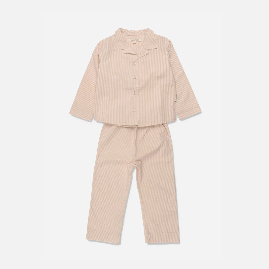 Organic cotton pyjamas for children in stonewashed cotton.Affordable luxury pyjamas with an aesthetic look and colour palette. Incredibly soft with a beautiful understated look and hand feel. Made with French seams inside for a more comfortable and stronger finish.