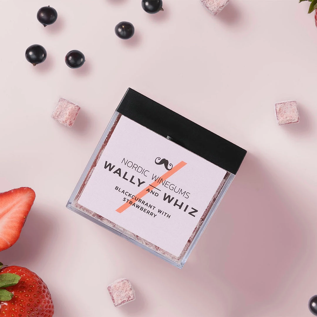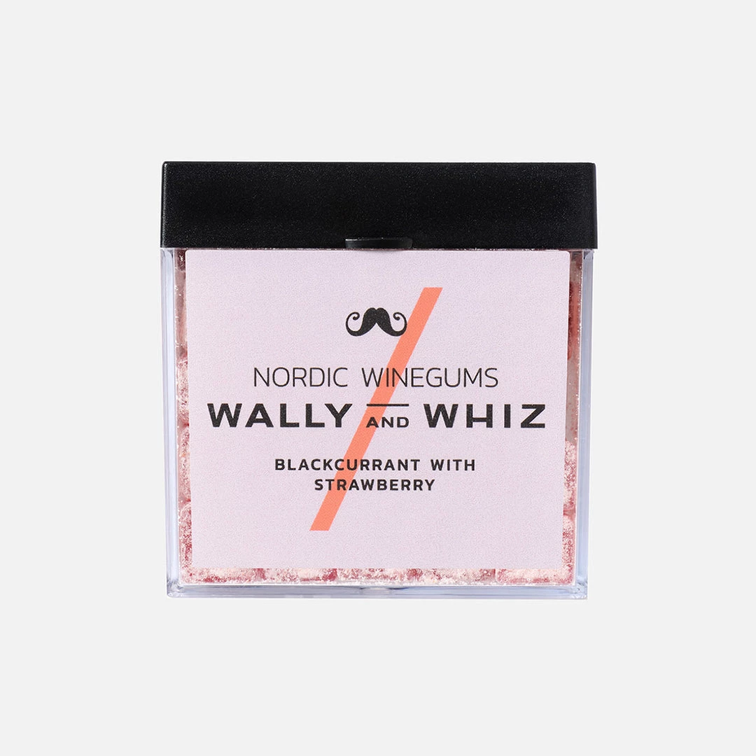 Delicious Nordic Winegums with the taste of strawberries that creates a fresh and sweet contrast to the deep and rich base of blackcurrants – sold as a cube of 140g.