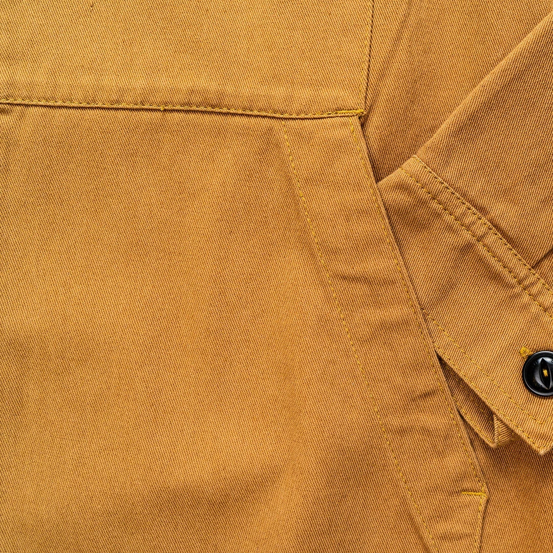 This jacket has generous chest pockets with buttoning pocket flaps which incorporate quarter side pockets. It has deep back yoke pleats for ease of movement. Made in 100% cotton twill, unlined with French seams the jacket is garment washed ensuring a relaxed silhouette.